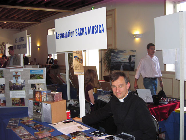 Monsieur l’abbé Bernard Lorber [Association Sacra Musica] à son stand
