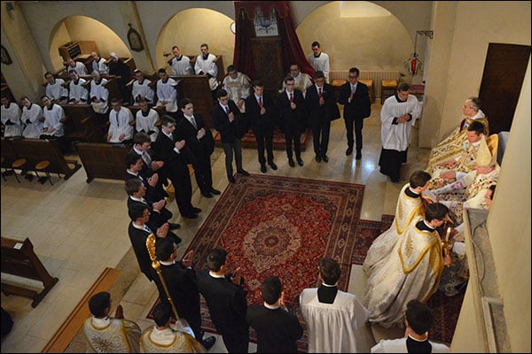 Le 2 février, au séminaire Saint-Curé‑d’Ars, Mgr Bernard Fellay, Supérieur Général de la Fraternité Sacerdotale Saint-Pie X , a remis l’habit clérical aux 14 séminaristes de 1ère année : 12 Français, 1 Anglais et 1 Suisse.