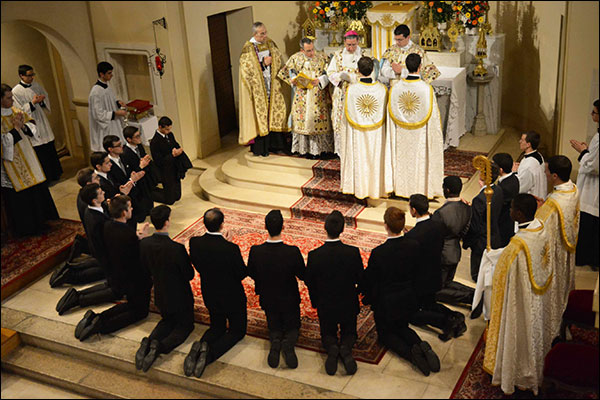 Le célébrant était assisté des abbés Patrick Troadec, directeur du séminaire (prêtre assistant), Jean de Lassus et Louis-Edouard Meugniot (diacres assistants), Michaël Demierre (diacre) et Foucaud le Roux (sous-diacre).