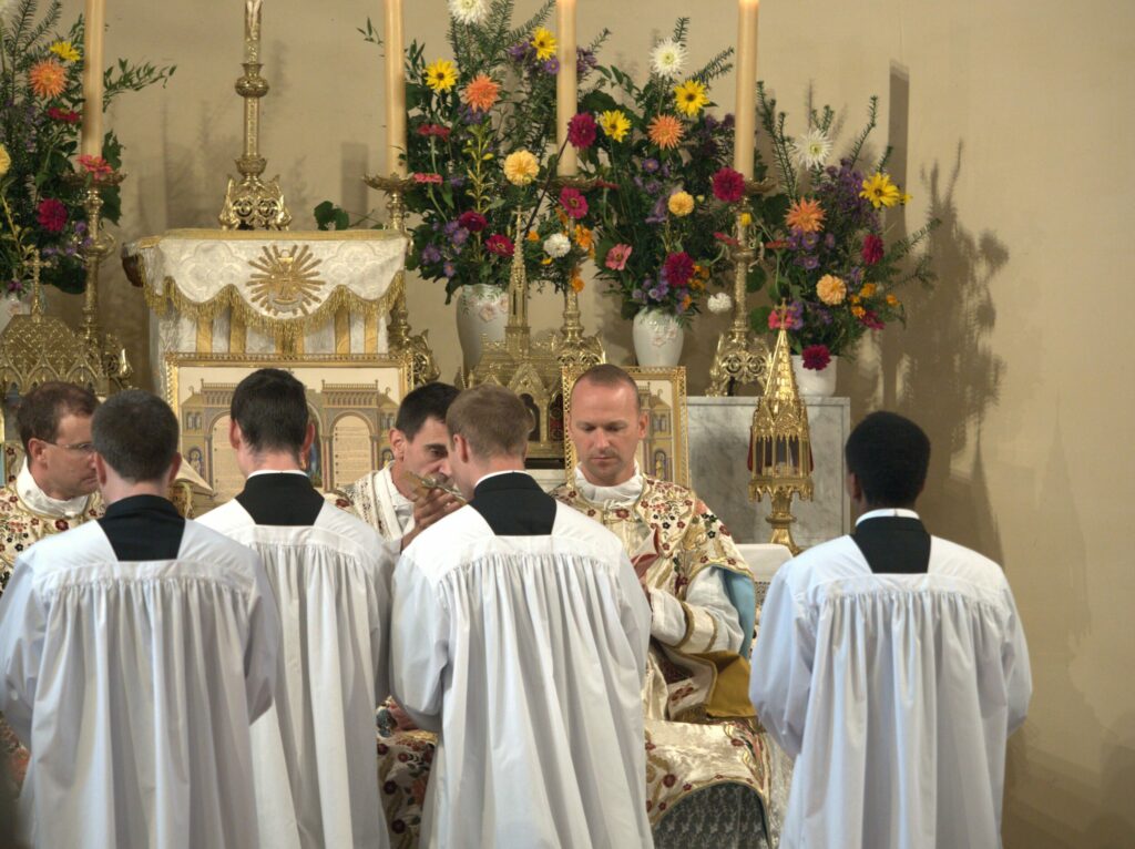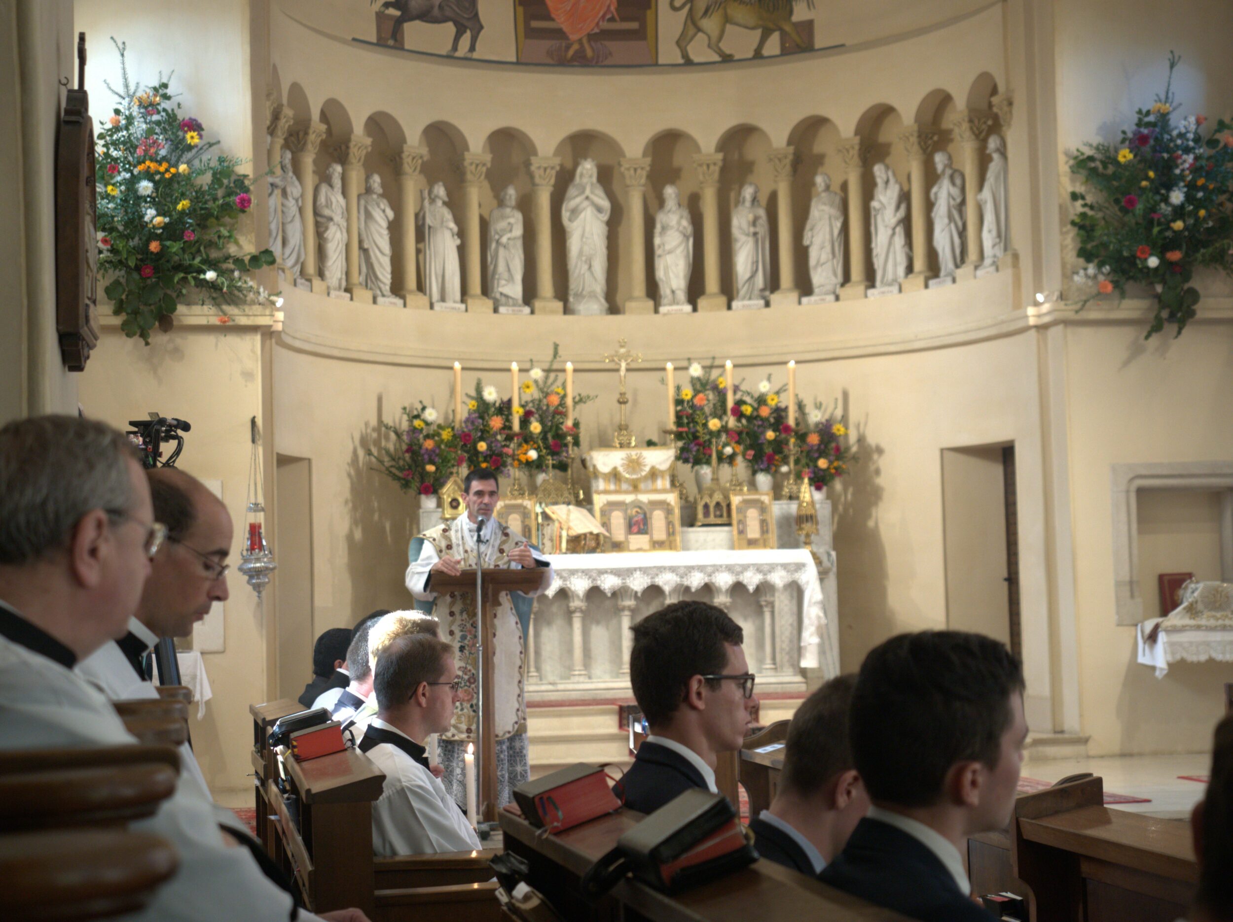 En cette fête radieuse de l’Archange Saint Michel, 29 septembre, souffle sur le Noviciat de Flavigny un esprit d’engagement viril et humble. Trois nouveaux novices font leur acte d’oblation après avoir reçu l’habit religieux bénit des mains du directeur. Ils sont rejoints par un séminariste d’Ecône, ayant choisi de consacrer sa vie à Dieu en devenant Frère de la Fraternité. Au cours de cette même Messe, deux Frères ayant terminé leur noviciat émettent leurs vœux religieux, avec une conviction qui a marqué l’assistance.