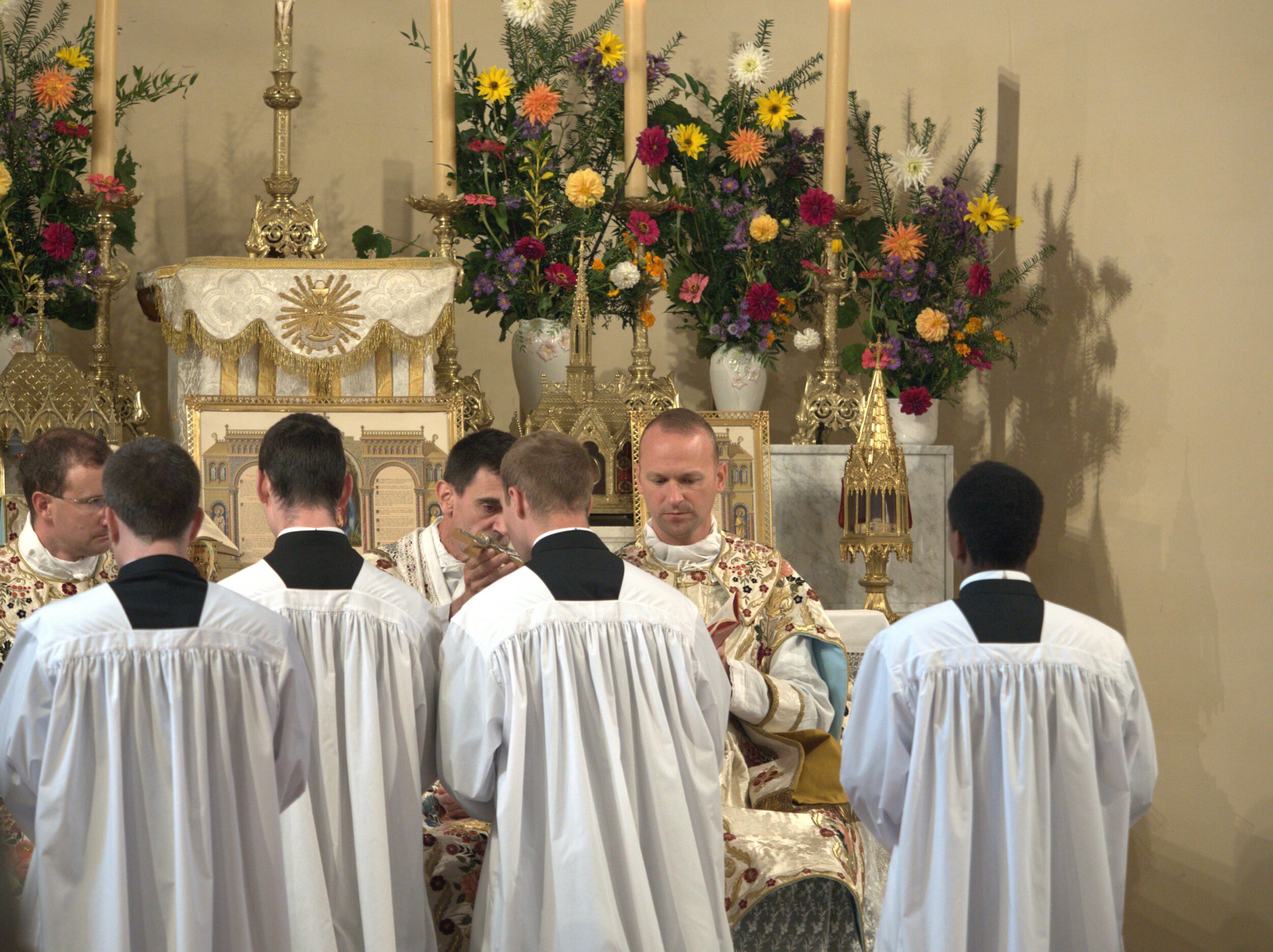 Pour cette belle journée, nos jeunes religieux eurent la joie de se voir entourés des sœurs oblates du Flavigny, de religieuses venues de la Maison-Mère des Sœurs de la Fraternité Saint Pie X, de religieuses petites servantes de Saint Jean-Baptiste venus du Rafflay et de Lourdes, ainsi que de sœurs Dominicaines. Un repas servi de 170 places couronna les festivités.
