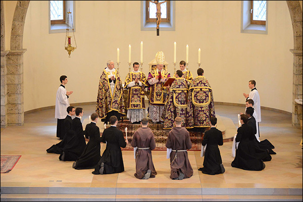 Le 11 mars 2017 Mgr Bernard Fellay, Supérieur Général de la Fraternité Sacerdotale Saint-Pie X, au cours de la messe pontificale, a donné la tonsure [Photo ci-dessus] à sept séminaristes de deuxième année, à deux moine du couvent des Capucins de Morgon et à un membre des Coopérateurs du Christ-Roi du Révérend Père Marziac.