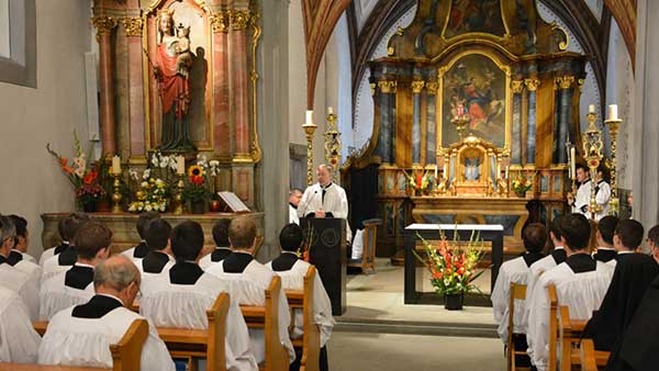 Point de départ de ce pèlerinage : l’incontournable Notre-Dame de Bourguillon, Gardienne de la Foi, dans le sanctuaire de laquelle Monseigneur et ses dirigés sont souvent venus prier. Certains même y ont reçu les ordres.