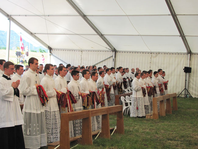 Un soleil radieux – « de plomb » diront les grincheux – inondait la prairie d’Ecône en ce mardi 29 juin 2010. Les Supérieurs des Districts, des Maisons autonomes et les recteurs des séminaires sont arrivés du monde entier pour participer à cette cérémonie où sont ordonnés huit Français et un Suisse.