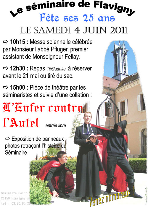 Reportage photos des 25 ans du séminaire St-Curé-d'Ars de Flavigny Samedi 4 juin 2011. Dix heures... les cloches du séminaire Saint-Curé-d’Ars sonnent joyeusement, et le clergé pénètre en pr...
