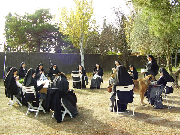Pour l’heure la communauté des 15 sœurs – dont 2 novices –, comprend des Françaises, Espagnoles, Mexicaines, Argentines, une Anglaise et une Portugaise. Elles sont logées dans la maison qui avait été construite sur le domaine ; elle est assez grande pour une famille, mais pas pour une communauté religieuse. Il a donc fallu faire des travaux de première urgence : tout d’abord la pose de la clôture, puis le vitrage de la terrasse couverte où a été installée la chapelle, en attendant…