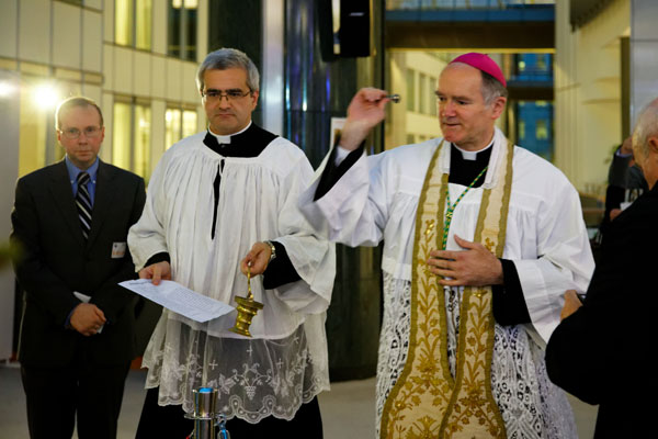 Ensuite, Mgr Bernard Fellay, qui avait personnellement tenu à être présent, a solennellement procédé à la bénédiction de cette crèche de Noël assisté de monsieur l’abbé Thierry Legrand, Supérieur du District de Belgique et des Pays-Bas.