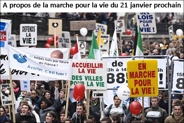Chers fidèles, Le 21 janvier prochain se déroulera à Paris la « marche pour la vie » en protestation contre les crimes de l’avortement et le projet de loi de la PMA (Procréation Médicalement Assistée), que le gouvernement voudrait soumettre au Parlement prochainement. Que les fidèles qui le souhaitent n’hésitent pas à s’y rendre. L’initiative est certes louable, mais elle ne sera qu’un exutoire improductif si elle n’est précédée et accompagnée de nos supplications vers le Ciel. Car il faut être réaliste : humainement parlant, ces combats sont perdus tant les forces politiques, médiatiques et financières soutiennent les crimes contre Dieu et l’humanité que constituent les 220 000 avortements annuels officiellement recensés, sans prendre en compte les avortements thérapeutiques. C’est un véritable génocide favorisé et perpétré depuis plus de quarante ans. Ce sont les sacrifices humains du XXIe siècle, commis en blouse blanche. Si tout recours humain semble vain pour arrêter un tel génocide, il nous reste, plus que jamais, la possibilité de tourner nos regards vers le Ciel et d’implorer la miséricorde divine pour la France et ses dirigeants qui défigurent la « Fille aînée de l’Église ». Aussi, chers fidèles je vous invite tous à répondre à l’appel de vos prêtres qui, partout où cela sera possible, organiseront, le 20 janvier ou à la date la plus proche, une veillée de prière réparatrice avec la récitation du chapelet devant le Saint Sacrement exposé. Nous y prierons aux intentions suivantes : - en réparation pour les crimes abominables de l’avortement ; J’encourage vivement ceux d’entre vous qui ne pourront se déplacer jusqu’à une de nos chapelles ou églises à réciter le chapelet chez eux en famille, à cette date du 20 janvier, et nos malades à offrir leurs souffrances à toutes ces intentions. Rappelons-nous les paroles de Sœur Lucie de Fatima :