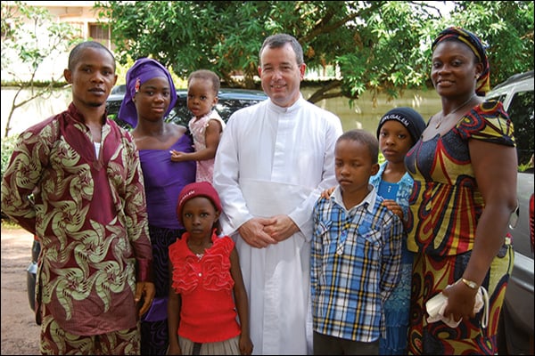 L’abbé Loïc Duverger entouré de fidèles nigérians