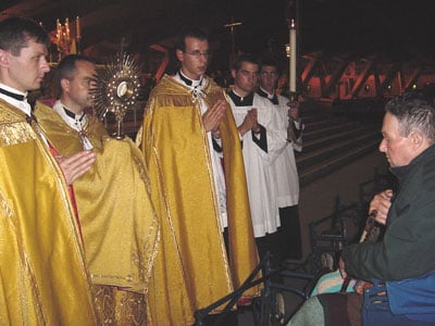 MB : La Fraternité m’a permis d’écrire à toutes les écoles, à tous les prieurés et m’a conseillé de contacter aussi toutes les communautés amies de la Tradition. La première, providentielle et immédiate réponse fut celle de Mère Antoinette-Marie du Rafflay qui me proposait de s’occuper des malades. Le succès du pèlerinage de Lourdes doit beaucoup aux Petites Soeurs de Saint Jean-Baptiste qui oeuvrent avec amour et dévotion et qui sont un exemple pour nous tous.