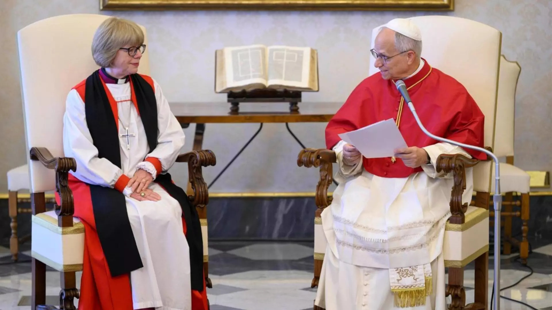 Restant jusqu’ici sourd aux démarches entreprises par le Supérieur Général de la Fraternité Saint-Pie X pour obtenir de sa part une simple audience, le pape Léon XIV a reçu au Vatican, ce lundi 27 avril, avec tous les honneurs dus à un archevêque, la représentante officielle du schisme anglican, qui encourage le lobby LGBT, se déclare ouverte à la possibilité de l’avortement et a reçu une ordination invalide, perpétrée au mépris du droit divin.