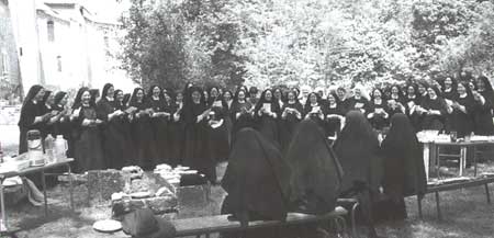 Deux soeurs professes émettent leurs vœux oerpétuels ; là, rien ne parait à l’extérieur hormis le « pour toujours » remplaçant « jusqu’au dimanche de Quasimodo ». Notons aussi que quatre « anciennes » ont le bonheur de célébrer leur jubilé d’argent.