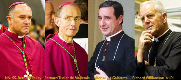 A Sa Sainteté le pape Benoît XVI Très Saint-Père, C’est dans l’action de grâces que nous désirons exprimer à Votre Sainteté notre profonde reconnaissance pour l’acte de Sa paternelle bonté et de Son courage apostolique par lequel Elle a rendu inopérante la mesure qui nous a frappés il y a vingt ans à la suite de notre sacre épiscopal. Son décret du 21 janvier 2009 réhabilite de quelque façon le vénéré fondateur de notre Fraternité sacerdotale, S. Exc. Monseigneur Marcel Lefebvre. Il procure aussi un grand bien à l’Église, nous semble-t-il, en faisant justice aux prêtres et aux fidèles du monde entier qui, attachés à la Tradition de l’Église, ne seront plus injustement stigmatisés pour avoir maintenu la foi de leurs pères. C’est en raison de ce combat de la foi que nous assurons votre Sainteté, comme Elle le souhaite, de « n’épargner aucun effort pour approfondir dans de nécessaires entretiens avec l’Autorité du Saint-Siège les questions encore ouvertes ». Nous désirons en effet commencer dès que possible avec les représentants de Votre Sainteté des échanges concernant des doctrines en opposition avec le Magistère de toujours. Par ce chemin encore nécessaire qu’évoque Votre Sainteté, nous espérons aider le Saint-Siège à porter le remède approprié à la perte de la foi à l’intérieur de l’Église. La Vierge Marie Immaculée a visiblement guidé les pas de Votre Sainteté à notre rencontre, elle Lui maintiendra sa gracieuse intercession. C’est avec cette assurance que nous demandons filialement au Pasteur universel de bénir quatre de ses fils les plus attachés au Successeur de Pierre et à sa charge de paître les agneaux et les brebis du Seigneur. Menzingen, le 29 janvier 2009, +Bernard Fellay |