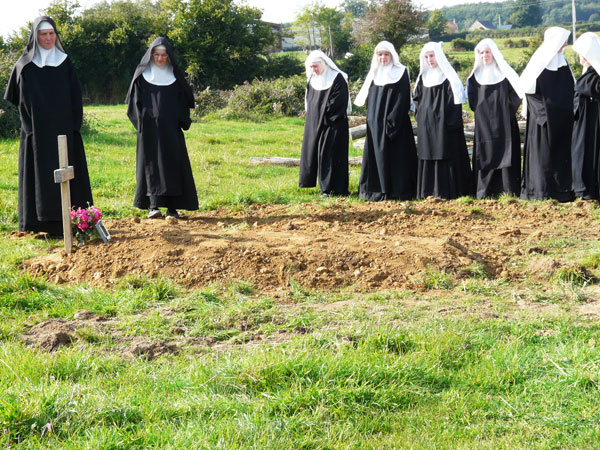Mère Prieure : Evidemment que ce transfert a été prévu. Il a d’ailleurs déjà eu lieu, le 24 septembre 2008. Cérémonie simple et touchante, à l’issue de laquelle notre Mère Gertrude de Maissin, depuis un champ un peu en surplomb du monastère, continue de veiller sur nous. C’est le jour du troisième anniversaire de ses funérailles, le 24 novembre 2008, que nous avons pu réellement déménager et recevoir ce si beau cadeau du bon Dieu : un monastère !