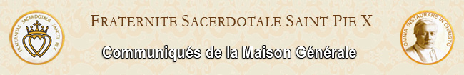 Mgr Fellay est ensuite revenu à la déclaration de sœur Lucie, en 1957, rappelant que le Rosaire et la dévotion au Cœur Immaculé sont les deux derniers remèdes donnés par Dieu à l’humanité.