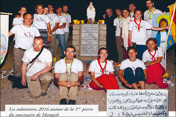 Côté village, l’ambiance est assez différente, quoique d’un avis commun sur la situation française. En effet les autorités locales font tout pour assurer la pérennité chrétienne sur ces terres, qu’ils pourraient quant à eux quitter facilement. Et c’est à cette tâche que nous les aidons. Ils ont voulu commencer par marquer l’identité chrétienne du village en construisant un sanctuaire à « Notre Dame du Kurdistan », appelé à être leur Lourdes local.