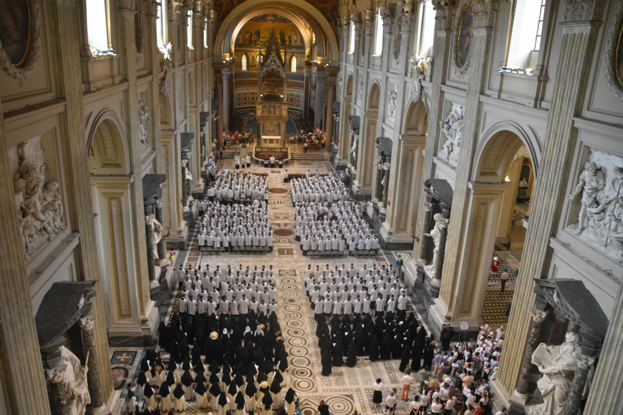 Les pèlerins processionnent à l’intérieur de la basilique Saint-Jean-de-Latran.