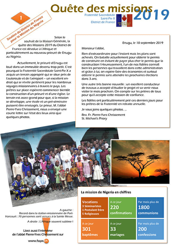 LETTRE AUX AMIS ET BIENFAITEURS DE LA MISSION SAINT-MICHEL AU NIGERIA