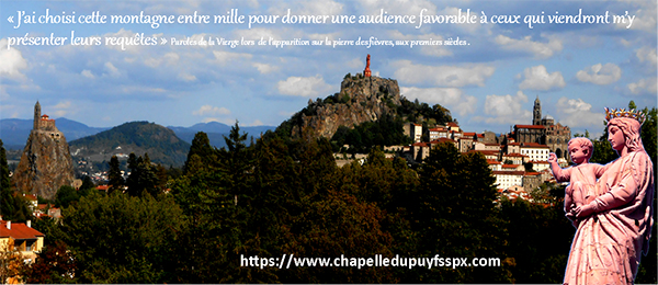 La tradition rapporte que la basilique du Puy fut consacrée par les anges, ces mêmes anges qui fêtent Notre-Dame du Mont-Carmel, comme nous pouvons le chanter dans l’introït de la messe du jour : « Réjouissons-nous ensemble dans le Seigneur, car la fête que nous célébrons aujourd’hui est celle de la Bienheureuse Vierge Marie. Cette Solennité réjouit les anges et tous en chœur louent le Fils de Dieu. »