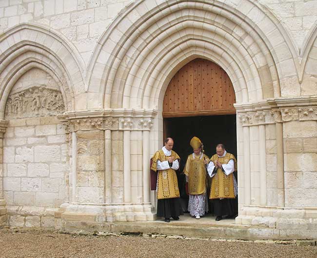 C’est Mgr Tissier de Mallerais, un des trois évêques de la Fraternité Sacerdotale Saint-Pie X, qui officiait lors d’une messe pontificale célébrée en l’église abbatiale de Ruffec acquise et restaurée par les religieuses.