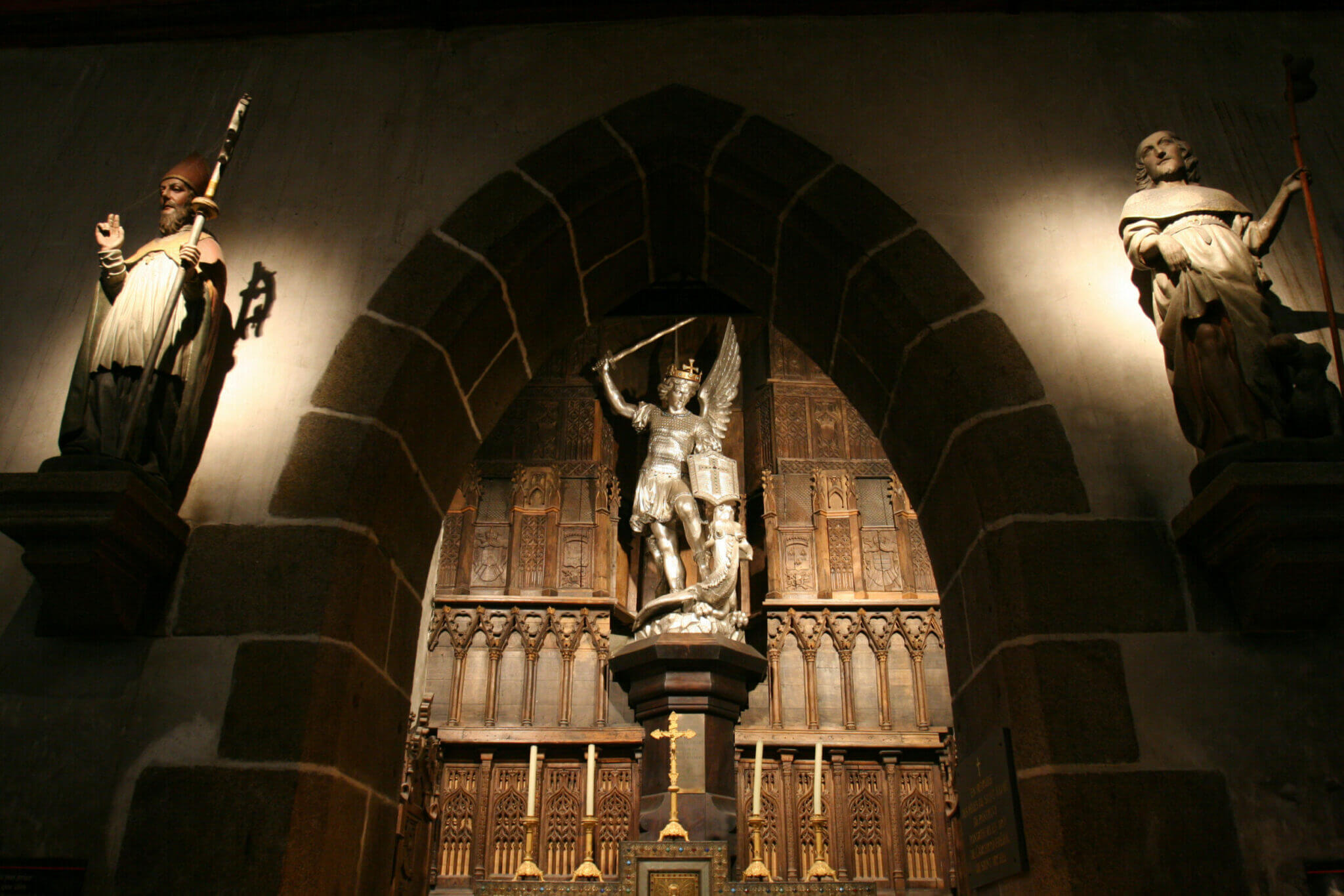 L’Écriture nous parle d’un combat de S. Michel contre le dragon : Il y eut un grand combat dans le Ciel : Michel et ses Anges combattait contre le dragon, et le dragon combattait avec ses anges[1].