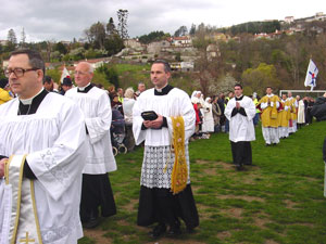 Les retrouvailles de ces deux mystères ne se produisent que bien rarement, la dernière fois en 1932, et je ne puis donc que remercier tous ceux qui se sont dévoués pour nous permettre, à nous aussi, de nous rendre dans d’excellentes conditions au Puy afin de gagner à notre tour cette indulgence jubilaire. Afin de vous y aider, chers pèlerins, je voudrais insister sur la signification de la rencontre de ces deux dates du 25 mars et du Vendredi Saint. Elle n’est pas fortuite. Même si nous ne pouvons parvenir à une certitude, il semble bien, d’après d’excellents auteurs et d’après une forte tradition, que la mort de Notre Seigneur Jésus-Christ a bien eu lieu 33 ans, jour pour jour, après le jour de son Incarnation. Le Bon Dieu, qui ne laisse rien au hasard, spécialement dans le choix des circonstances et des moindres détails qui président à la vie de son Fils, a voulu qu’il en soit ainsi. Et nous trouvons, dans cet établissement du Jubilé du Puy une confirmation de l’importance que l’Eglise accorde aux quelques rencontres de ces deux dates qui se produisent au cours des siècles. Aussi, après avoir souligné le sens de cette correspondance de dates, je dirai combien elle éclaire la mission des prêtres et des futurs prêtres, mais également celle de tous les catholiques.