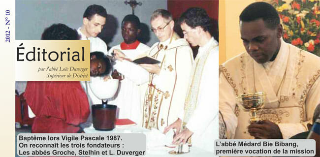 En janvier 2011, nous fêtions les 25 ans de la Mission Saint Pie X. En cette année 1986, la Fraternité Sacerdotale Saint Pie X ouvre en Afrique deux maisons, une au Gabon et une au Zimbabwe, après avoir ouvert l’année précédente en 1985 le prieuré à Johannesburg en Afrique du Sud.