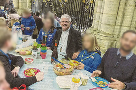 Le droit canonique traditionnel (canon 1178) proscrit dans les églises toute activité qui ne convient pas à la sainteté du lieu, les repas notamment. Si la cathédrale d’Amiens a été bâtie il y a 800 ans, c’est pour que s’y déroule le Saint Sacrifice de la Messe dans son rite de toujours. Aujourd’hui, celui qui est vice-président de la Conférence des évêques de France encourage lui-même à y festoyer. Décidément, le concile Vatican II et la nouvelle messe opèrent infailliblement leurs effets : ceux de la religion de l’homme qui se fait Dieu. Un seul remède se présente lui aussi infailliblement, celui du retour à la Tradition catholique.