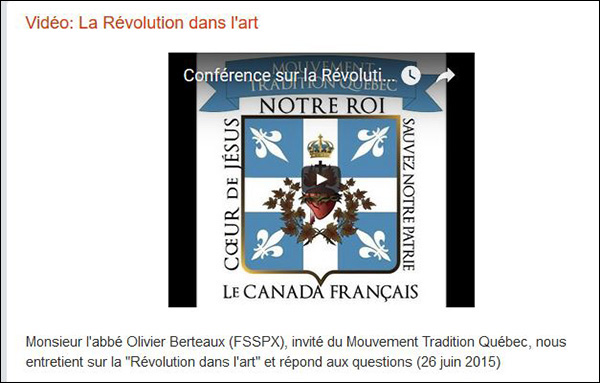 Conférence donnée le 26 juin 2015 au Canada par M. l’abbé Olivier Berteaux sur la révolution dans l’art.