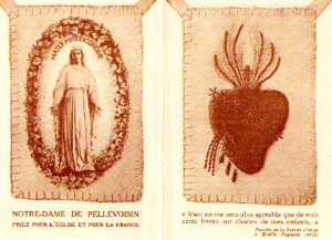 La Vierge Marie s’adresse alors à Estelle : « Depuis longtemps les trésors de mon Fils sont ouverts, qu’ils prient ». En disant cela, elle souleva la petite pièce de laine qu’elle portait sur la poitrine en disant : « J’aime cette dévotion…C’est ici que je serai honorée ».