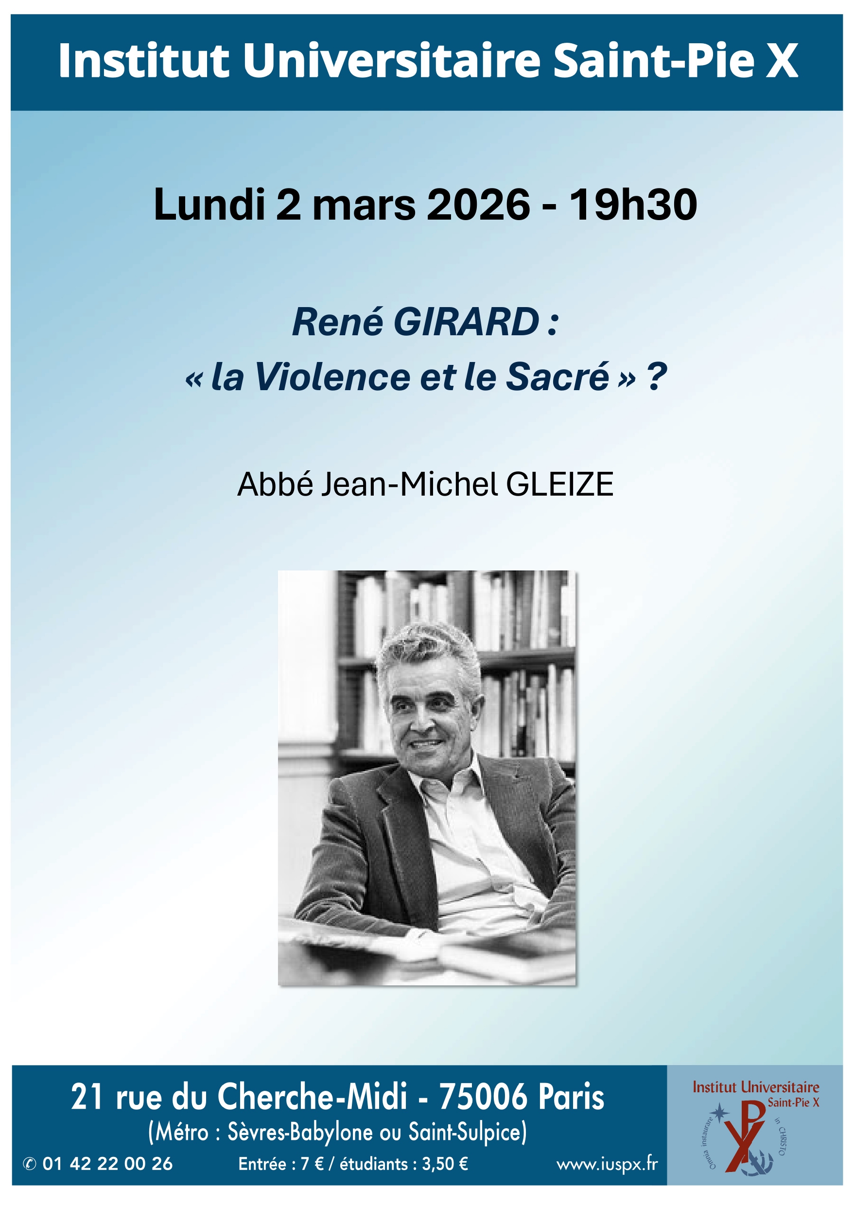 Par M. l’abbé Jean-Michel Gleize à 19h30. Source : site de l’IUSPX Ajouter l'évènement au calendrier Google