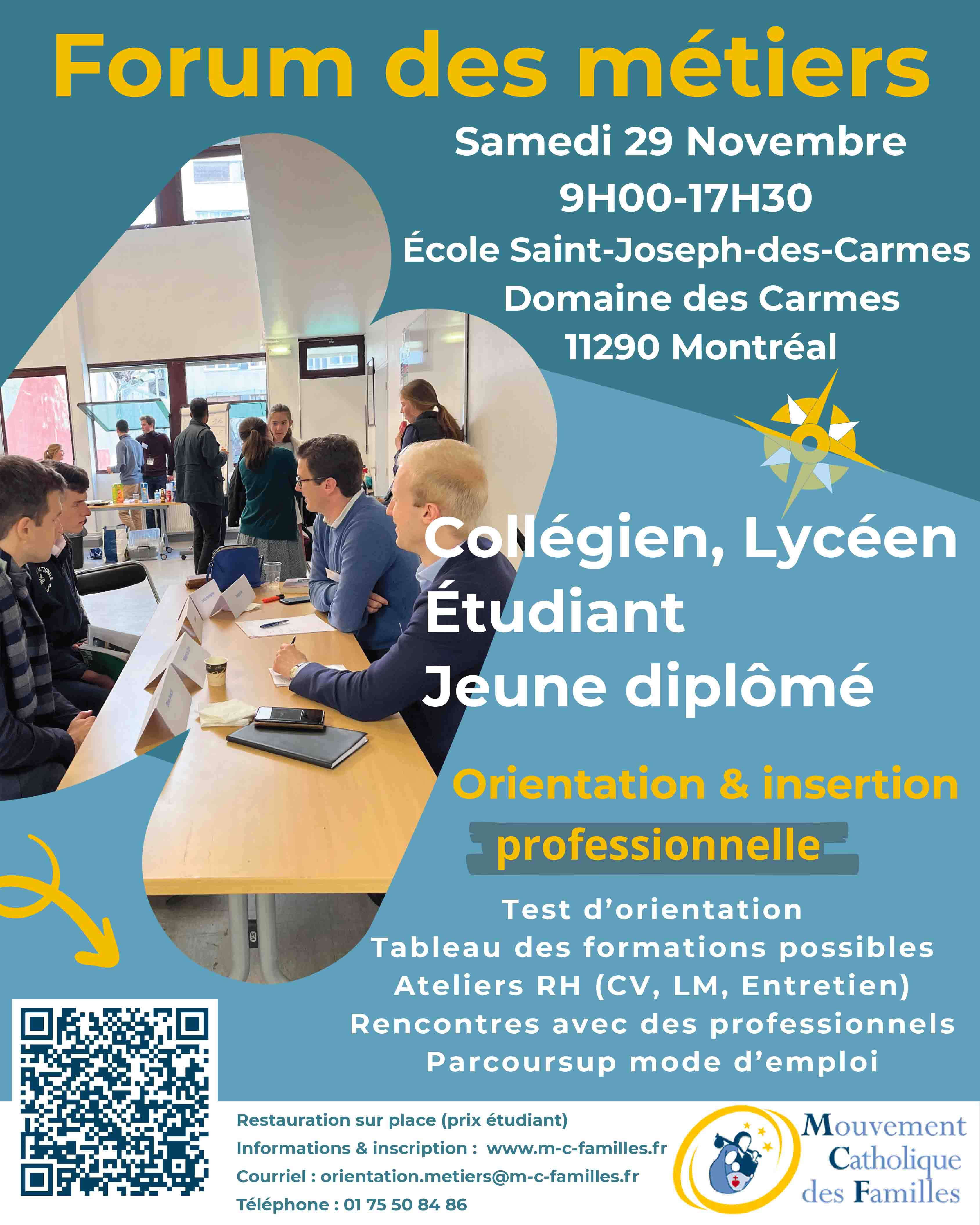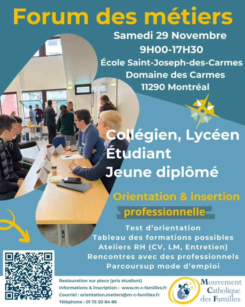 Organisé par le Mouvement Catholique des Familles depuis plus de quinze ans à Paris, cet événement s’adresse aux élèves à partir de la classe de 3e et aux lycéens pour les accompagner dans leur choix d’orientation.