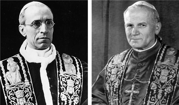 Le 19 décembre dernier, Benoît XVI proclamait l’héroïcité des vertus de Pie XII et de Jean-Paul II. Avant dernière étape sur le chemin de la béatification proprement dite, une telle proclamation est importante. S’il faut encore attendre la reconnaissance du miracle pour qu’un culte soit voué à ces papes défunts, les voici déjà posés en modèle sur le chemin de la sainteté : de façon héroïque, nous dit-on, ils ont pratiqué les vertus chrétiennes, celles-là même qui font les saints.
