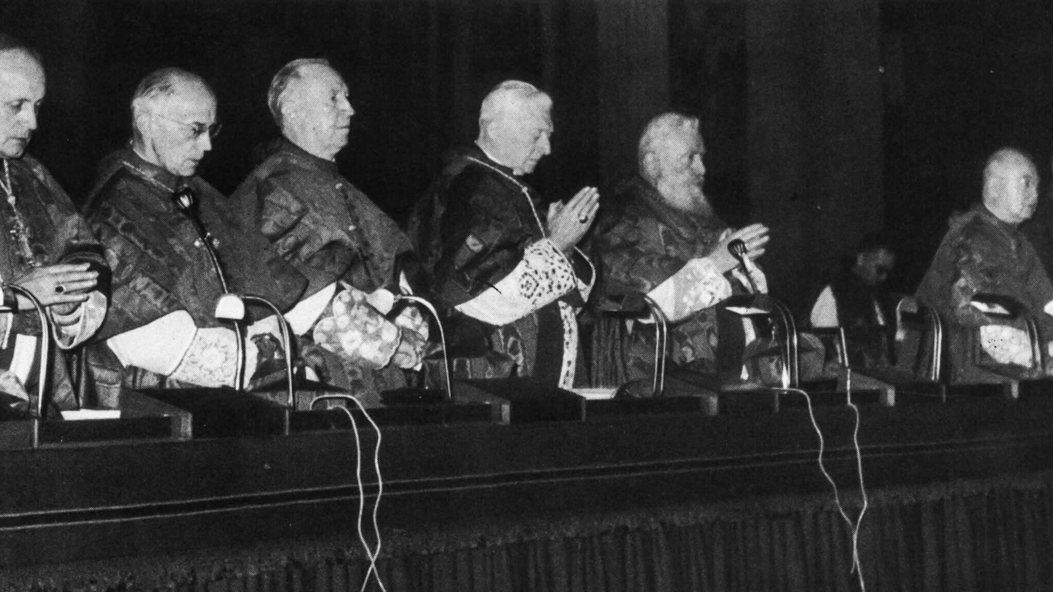 - Le cardinal Ottaviani, du Saint-Office et le cardinal Bea du Secrétariat pour l’Union des Chrétiens.[↩]