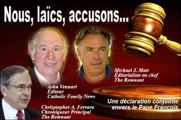 Deux des grands médias amé­ri­cains proches de la Tradition catho­lique, The Remnant et Catholic Family News, inter­pellent vio­lem­ment le pape François contre lequel ils viennent de publier une lettre ouverte inti­tu­lée « We Accuse Pope Francis », c’est-​à-​dire « Nous accu­sons le pape François ».