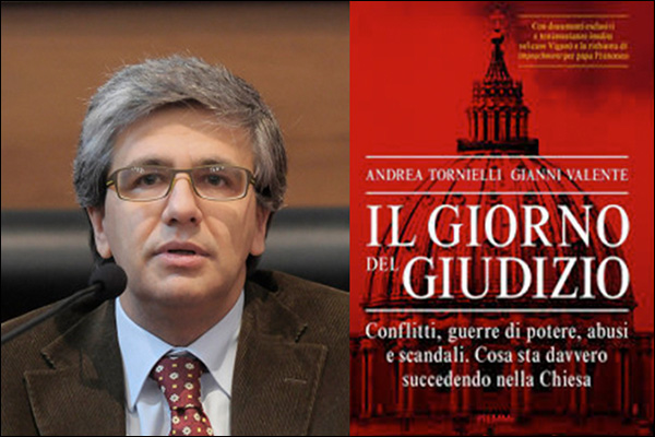 Andrea Tornielli, vaticaniste du quotidien La Stampa et responsable du site web Vatican Insider, en collaboration avec le journaliste Gianni Valente, vient de publier Le jour du jugement [Voir photo ci-dessus], un important essai sur le « cas Viganò », au sous-titre éloquent : Conflitti, guerre di potere, abusi e scandali. Cosa sta davvero succedendo nella Chiesa (Edizioni Piemme, 255 pages). (Ndt : Conflits, guerres de pouvoir, abus et scandales. Que se passe-t-il vraiment dans l’Eglise ?).