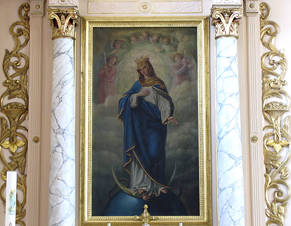 Et d’abord une parabole : un Royaume, un palais, un Roi glorieux, Fils aîné d’une Reine : la Reine-Mère acclamée avec amour : Salve Regina Mater… Son Fils veut que Sa Mère soit partout honorée. Dans le Palais, sept cadres d’or, sept portraits de la Reine en toute sa gloire, parée des bijoux que Lui a donnés son Fils, des bijoux qu’Elle seule a le privilège de porter. Tous ses autres enfants, tous ses sujets L’aiment et L’honorent à l’envi.