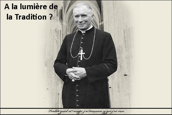 1. La formule selon laquelle il faudrait « interpréter le Concile à la lumière de la Tradition » est souvent attribuée à Mgr Lefebvre. Et de fait, dans une conférence spirituelle à Écône, celui-ci avait en effet déclaré :