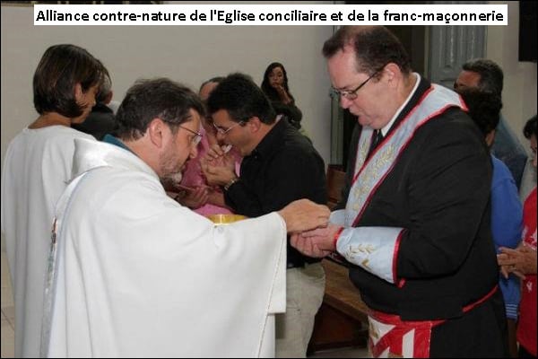 L’Église conciliaire, tout en prétendant rester bien distincte de la F.-M. juridiquement, professe ouvertement une doctrine maçonnisée.