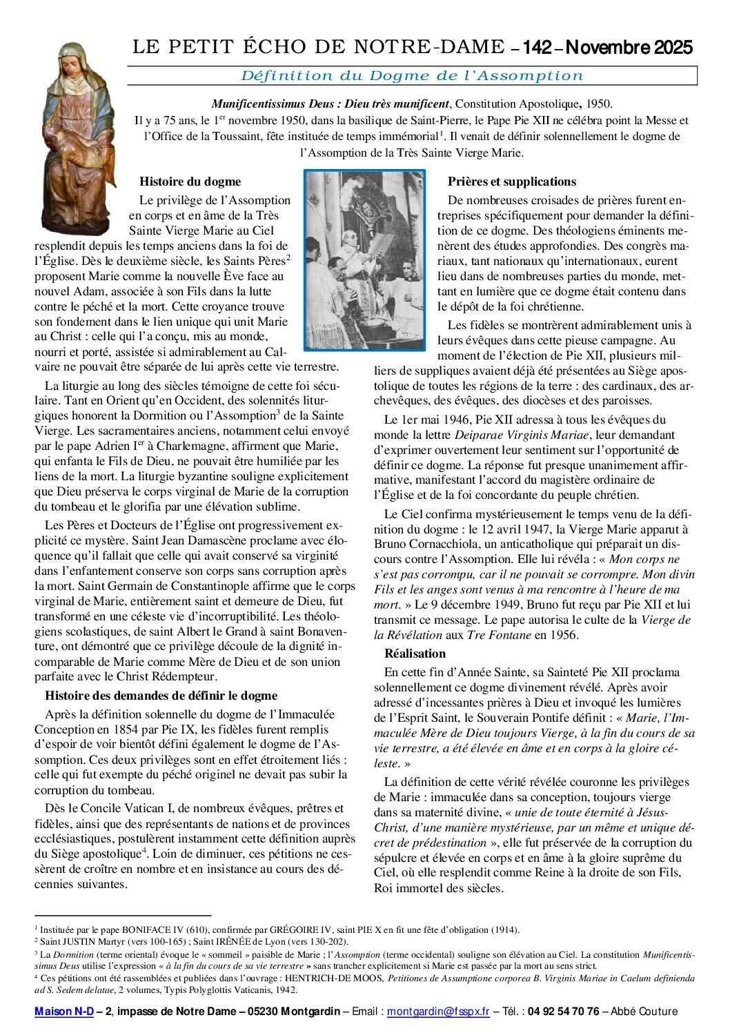 PEND N° 142 Novemvre 2025 – Munificentissimus Deus – Proclamation du dogme de l’AssomptionNovembre 2025