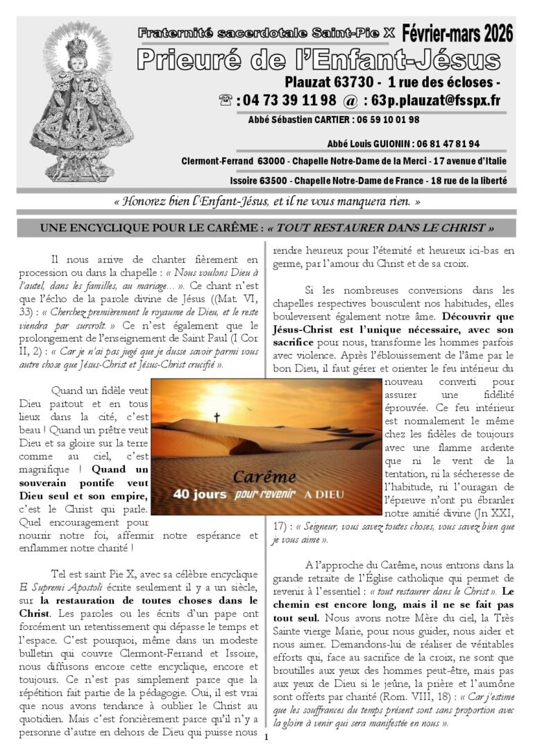 Plauzat Prieuré de l'Enfant-Jésus FSSPX District de France +33 4 73 39 11 98 [email protected] Faire un don Site internet du Prieuré