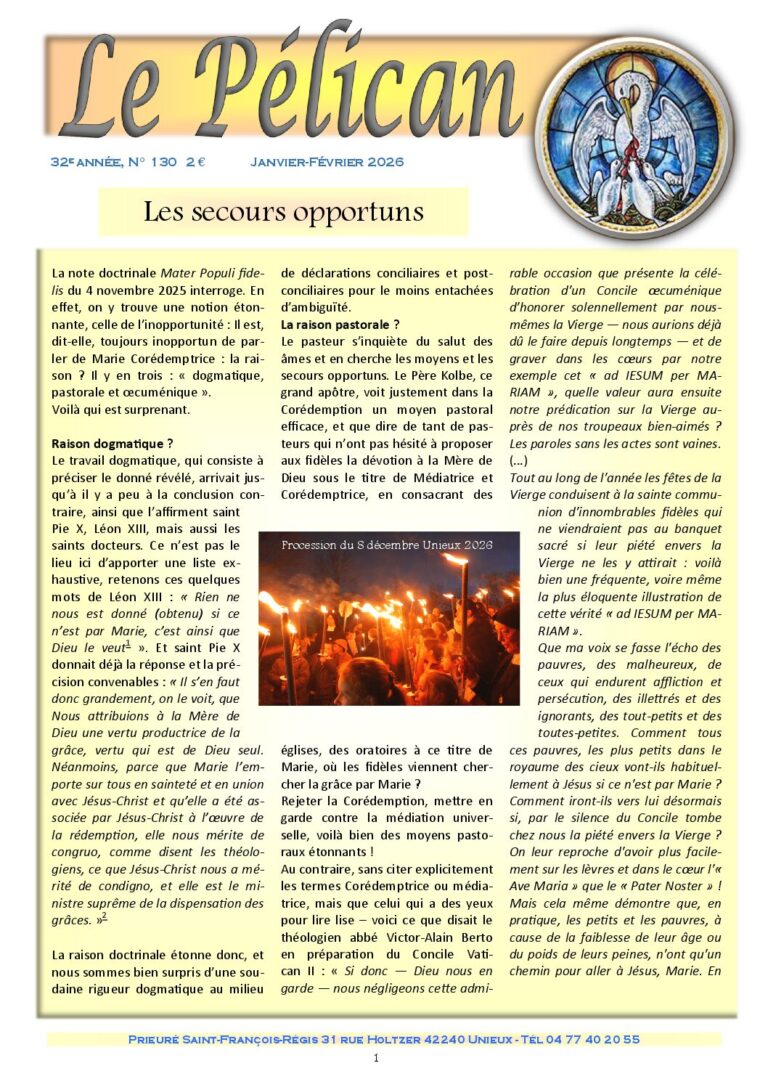 Unieux Prieuré Saint-François-Régis FSSPX District de France +33 4 77 40 20 55 [email protected] Faire un don (taxé en partie) Site de la chapelle du Puy-en Velay Annonces