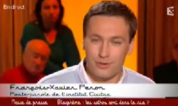 Mardi 13 décembre 2011, François-Xavier Peron, porte-parole de Civitas est l’invité de Frédéric Taddéi dans son émission « Ce soir ou jamais » sur la chaîne de télévison France 3.