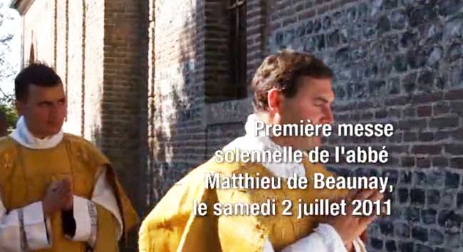 Ordination à Ecône le 29 juin 2011 et première messe solennelle le samedi 2 juillet 2011 dans l’église Saint-Matthieu du château de Bois Clieu à Derchigny, près de Dieppe de l’abbé Matthieu de Beaunay.
