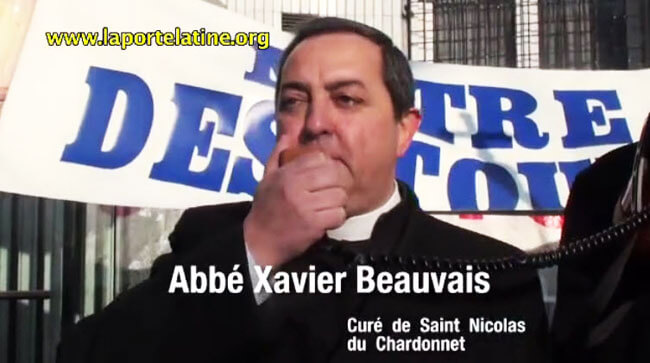En cette date anniversaire de la première apparition de la Très Sainte Vierge Marie à Lourdes, l’abbé Xavier Beauvais, curé de Saint-Nicolas-du-Chardonnet a prononcé un exorcisme sous les huées d’une meute de gauchistes déchaînes.
