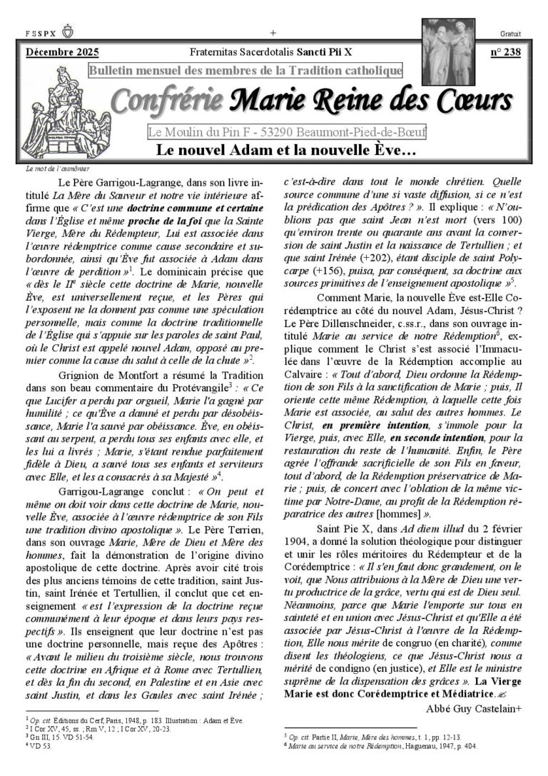 - La Confrérie Marie Reine des Cœurs propose un bulletin mensuel gratuit pour progresser dans la vie mariale.