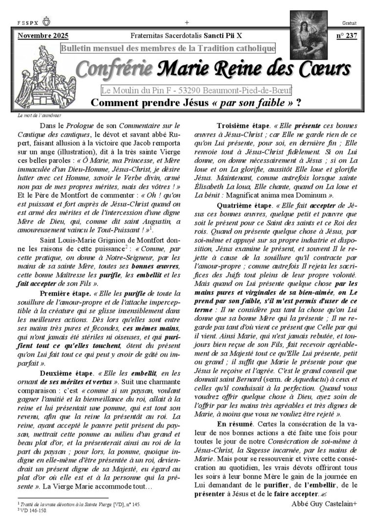 - La Confrérie Marie Reine des Cœurs propose un bulletin mensuel gratuit pour progresser dans la vie mariale.