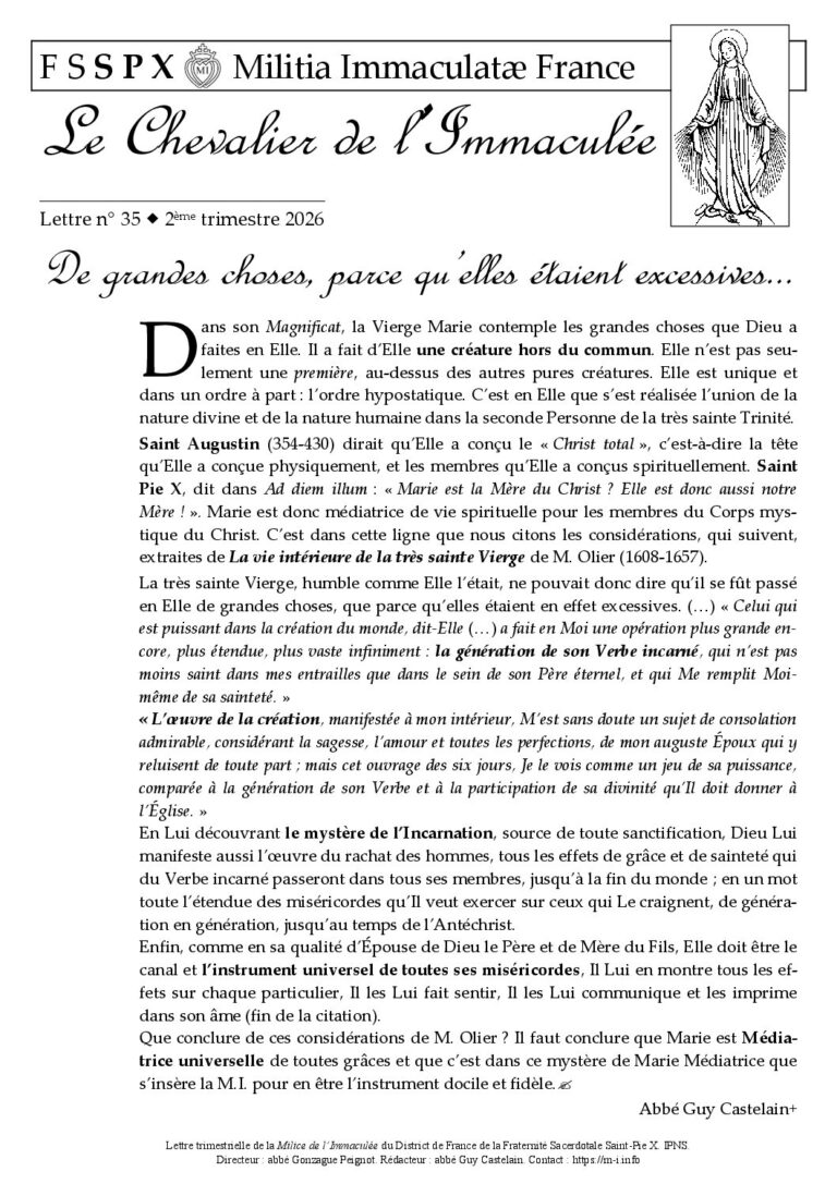 L’envoyer à l’adresse suivante : Centre de distribution de la Militia Immaculatæ Atelier de Marie – Le Moulin du pin – 53290 Beaumont en Pied de Bœuf.