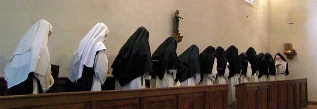 Les filles de saint Benoît, à leur tour, nous montrent le premier dégrossi des plans de leur monastère pour nous demander conseil, et en prime nous leur glissons nos propres erreurs de chantier. La diversité des ordres et des spiritualités est une des pures merveilles de la sainte Église. Les âmes doivent être là où Dieu les veut, et c’est ainsi que nous nous réjouissons quand une jeune fille passée chez nous entre finalement au Carmel. Ou que nos soeurs bénédictines nous envoient une vocation. De même, lorsque nous recevons des retraitantes attirées par notre spiritualité, nous les orientons vers nos soeurs enseignantes si nous ne discernons pas chez elles l’appel à une vie contemplative.