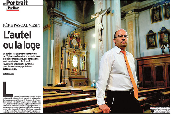 En avril 2010, Mgr Yves Boivineau, évêque d’Annecy, reçoit une lettre anonyme désignant le père Vesin comme franc-maçon. À la question de son évêque, il répond en niant tout d’abord 32. Mais en 2011, suite à un second courrier anonyme, il reconnaît enfin son appartenance. Il est également confondu par le site internet d’une loge qu’il a visitée, celle-ci publiant ce commentaire : « Nous recevons un frère curé à Megève (33).»
